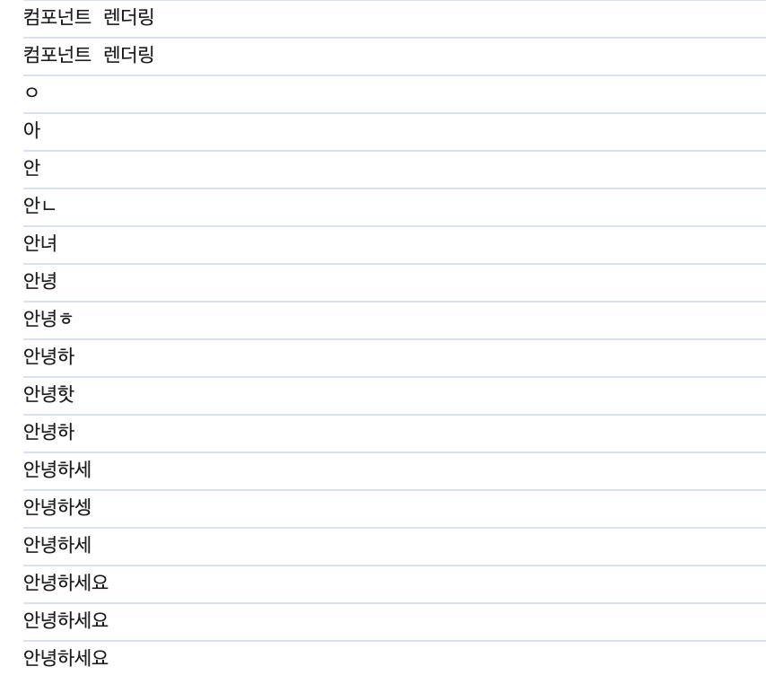 usestate를 사용하면 '안녕하세요'를 작성할 때 컴포넌트 렌더링이 엄청나게 많이 된것을 확인할 수 있는 반면